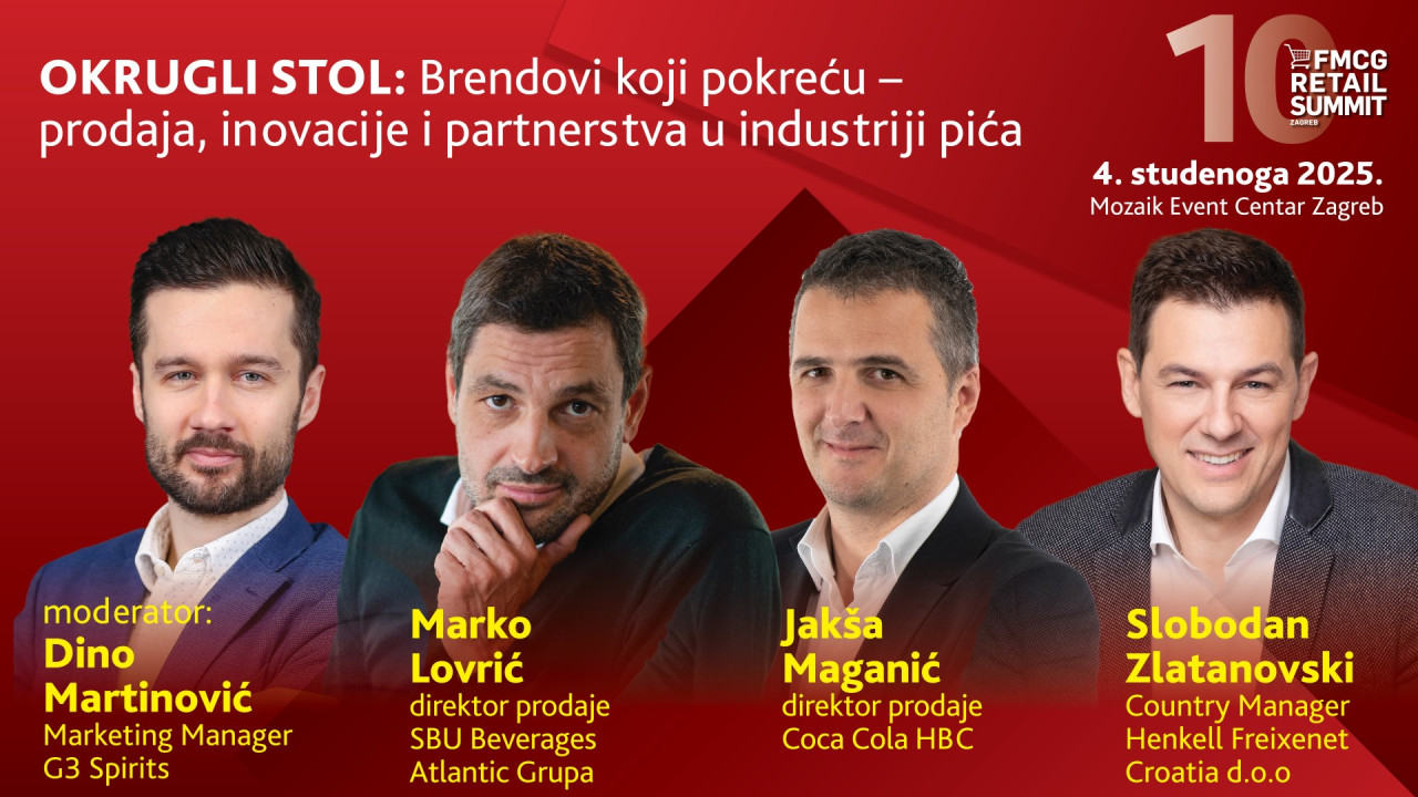 Na nadolazećem FMCG retail summitu održat će se okrugli stol posvećen trgovini i aktualnim izazovima FMCG sektora. Panel će moderirati Dino Martinović, direktor marketinga u G3 Spirits, a svoja će iskustva i poglede na tržište podijeliti vodeći prodajni stručnjaci: Marko Lovrić (direktor prodaje, SBU Beverages, Atlantic Grupa), Jakša Maganić (direktor prodaje, Coca-Cola HBC) i Ante Pralija (direktor prodaje, Jamnica Plus). Očekuje se dinamična rasprava o trendovima, inovacijama i budućnosti maloprodaje.