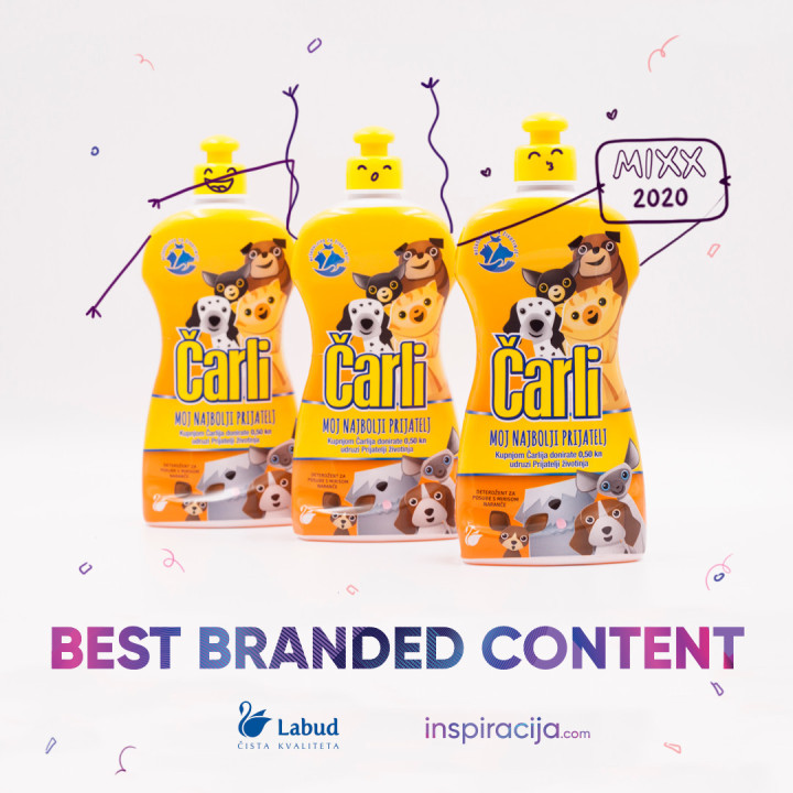 Kampanja Meteor Grupe – Labud; Čarli – Moj najbolji prijatelj, osvojila je na Danima komunikacija nagradu MIXX u kategoriji „Best Branded Content“. U konkurenciji najboljih digitalnih kampanja i platformi u području tržišnih komunikacija ocjenjivani su kreativnost, strategija, izvedba i korištenje medija, kao i postignuti rezultati. Cilj kampanje i akcije, koja se i dalje provodi u suradnji s udrugom Prijatelji životinja, je podizanje svijesti o potrebi zaštite i odgovornog ponašanja prema životinjama, zaustavljanja njihove eksploatacije i zlostavljanja, kao i poticanje udomljavanja životinja iz azila.