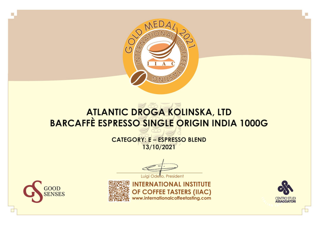 Na ovogodišnjem Međunarodnom natjecanju u degustaciji kave, koje je održano sredinom listopada 2021. godine, u organizaciji Međunarodnog instituta za degustaciju kave (International Institute of Coffe Keys), Barcaffè espresso osvojio je zlato za Barcaffè India Single Origin. To je već 11 medalja za Barcaffe espresso na ovim natjecanjima koja se održavaju svake godine.