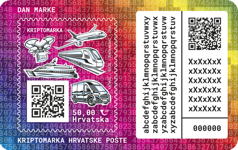 Hrvatska pošta će povodom Dana marke, 9. rujna 2020., pustiti u optjecaj prvu hrvatsku Kriptomarku. Marka je izdana u pet kategorija s pet različitih motiva koji prikazuju prijevozna sredstva: kombi (60.000 primjeraka), vlak (25.000 primjeraka), brod (10.000 primjeraka), zrakoplov (4000 primjeraka) i dron (1000 primjeraka).