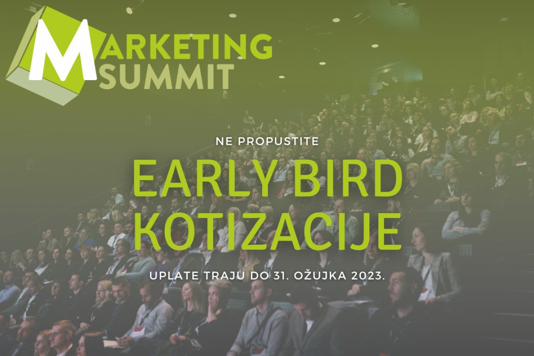 Zadnji je dan za rane prijave na Marketing Summit Zagreb! Ne propustitie ovu izvrsnu priliku i provedite s nama dan pun inspiracije, zanimljivih predavanja domaćih i međunarodnih stručnjaka iz FMCG marketinga, druženja s kolegama iz sektora, stjecanja novih znanja i upoznavanja novih ljudi.