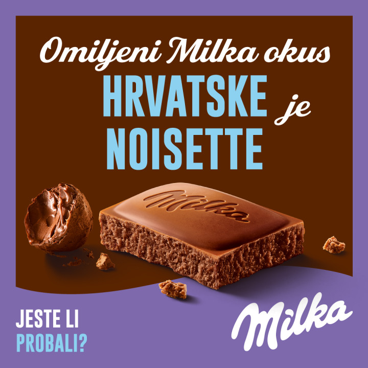 Ljubitelji Milka čokolade u Hrvatskoj odabrali su svoj omiljeni Milka okus. To je Milka Noisette – neodoljivo kremasta mliječna čokolada s alpskim mlijekom i lješnjakovom pastom.