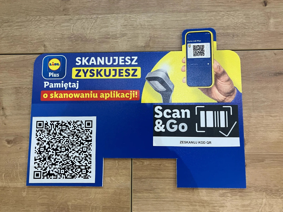 Stalni znak Scan & Go je postavljen neposredno v pekarni. Sporočilo "Skanujesz, zyskujesz" (Skeniraš, dobiš) želi okrepiti nakupovanje v aplikaciji kot standardnega.