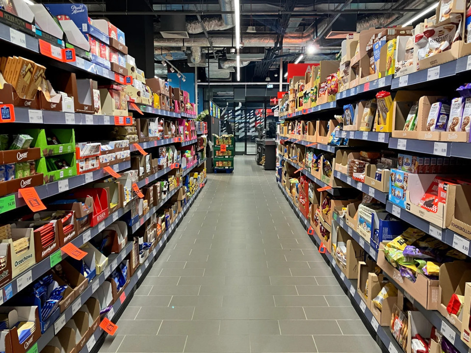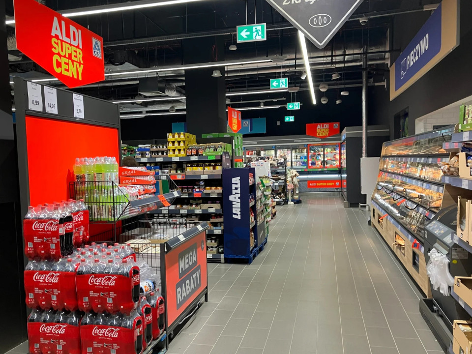600 m² velika trgovina Aldi v formatu Compact 2.0 na postaji Warszawa Zachodnia se nahaja eno raven pod peronom, neposredno v coni gibanja potnikov.
