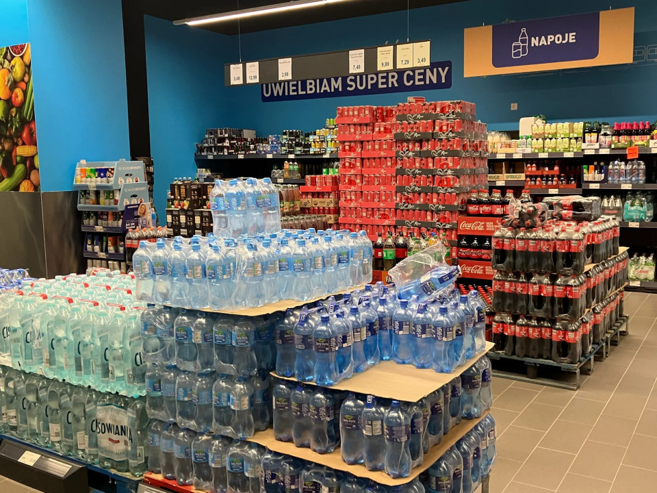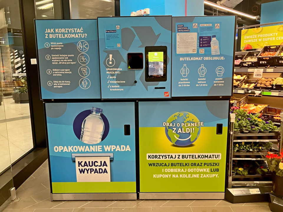 Naprava za vračilo embalaže je nameščena pri samem vhodu. Od 1. januarja 2026 morajo trgovci na Poljskem sprejemati vračilo embalaže v okviru nacionalnega sistema kavcij.