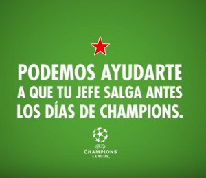 Heineken Španija se je za svoj zadnji projekt povezal z evropsko nogometno zvezo (UEFA). Skoraj 60 odstotkov Špancev pravi, da jim ne uspe pravočasno priti domov (ali v lokal) za ogled začetka tekem Lige prvakov, ker enostavno predolgo ostanejo na delovnem mestu.