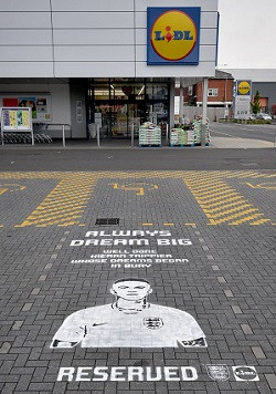Christian Härtnagel, izvršni direktor Lidla za Združeno kraljestvo, je ob tej priložnosti povedal: "Presrečni smo, da lahko pokažemo svojo pripadnost Garethu in tej neverjetni angleški ekipi. Kot uradni trgovec nogometne reprezentance igralce na njihovi poti spodbujamo že lep čas in smo zelo ponosni na to, kar so dosegli."