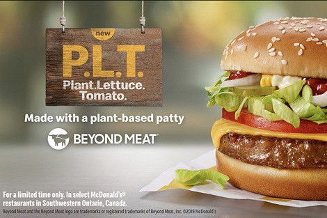 Novost McDonald's v svojih restavracijah prodaja kot burger PLT (Plant-Lettuce-Tomato), kar je protiutež burgerju s slanino BLT (Bacon-Lettuce-Tomato). Za začetek je PLT na voljo na 28 lokacijah v provinci Ontario