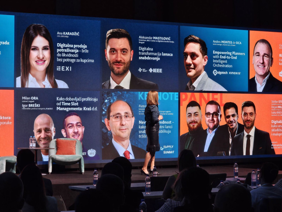 Ana Karadžić, direktorica EXI Srbija, je spregovorila o ohranjanju likvidnosti v dobavnih verigah, Aleksandar Mastilović, svetovalec IEEE/Centre for Digital Transformation Beograd, pa je spregovoril o tem, kako lahko digitalne rešitve izboljšajo agilnost, transparentnost in natančnost procesov.