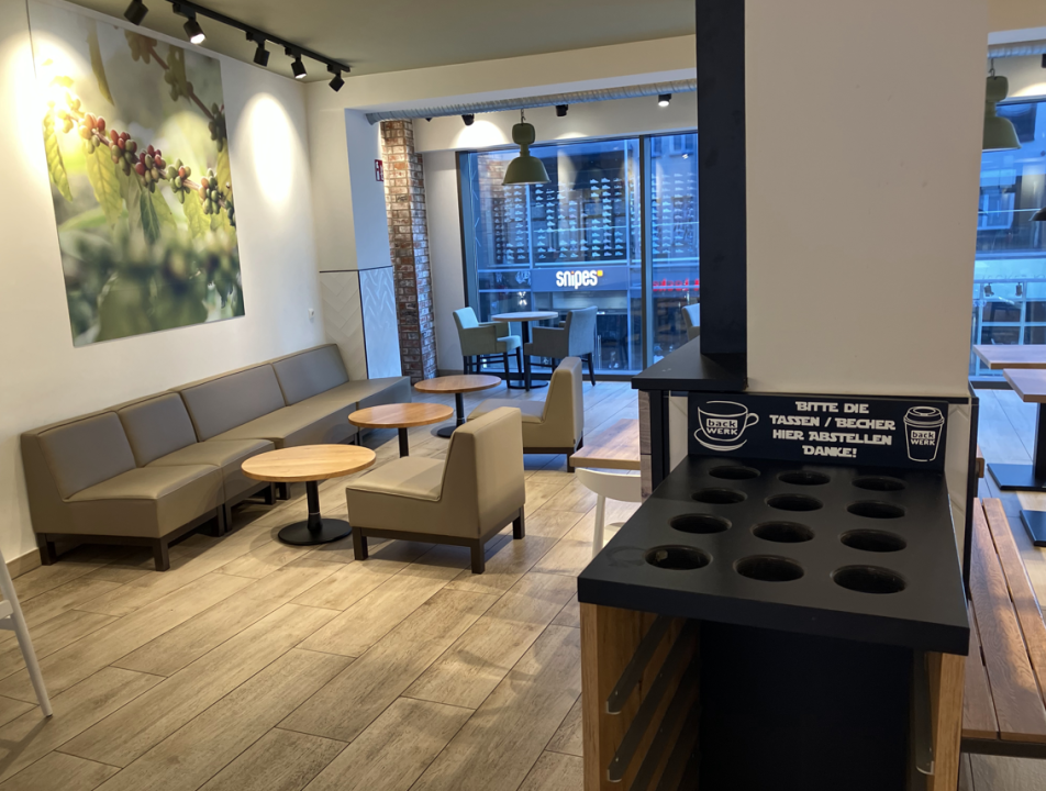BackWerk je postal ena največjih pekarskih verig v Nemčiji. Koncept združuje tradicionalno pekarsko kulturo s sodobnim hitrim in sproščenim pristopom. Njihovi bari v središču mesta privlačijo popotnike, pisarniške delavce in turiste, saj ponujajo hitre prigrizke in posedanje v "kavarniškem" slogu.