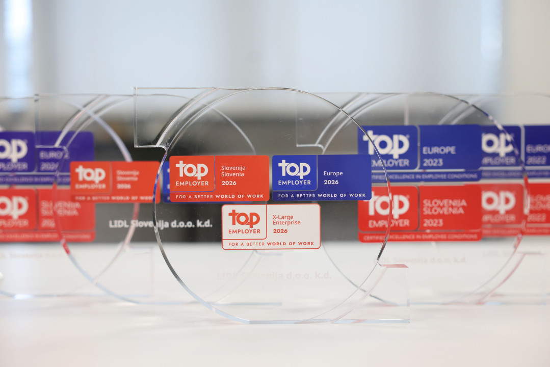 Zavezanost ekipi potrjujejo tudi mednarodno priznani certifikati. Lidl Slovenija je prejemnik certifikatov Top Employer Slovenija 2026 in Top Employer Europe 2026, letos so ga prejeli že sedmič ter polnega certifikata Družini prijazno podjetje.