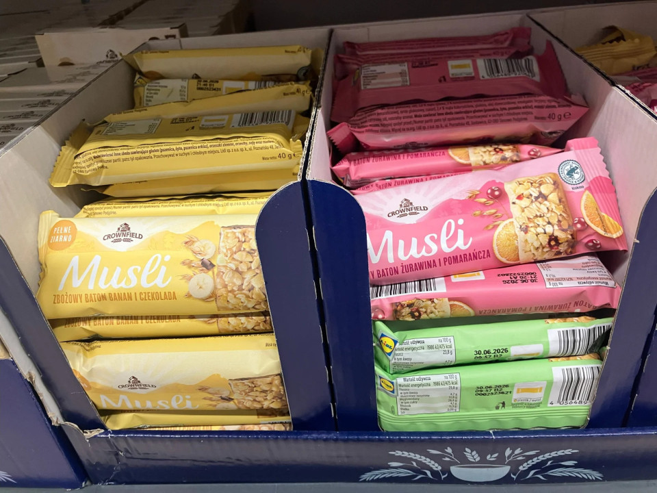 Lidl Poljska v oddelek z žitaricami vključuje vrečke za zajtrk z blagovno znamko, prigrizke Crownfield in premium müsli znamke Deluxe, s čimer poudarja udobje in premiumizacijo v kategoriji, ki je bila sicer tradicionalno statična.