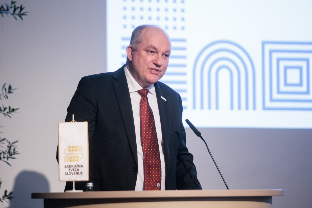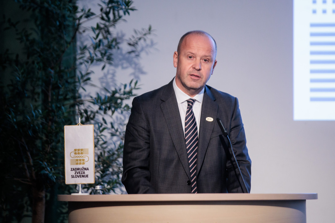 »Zadružni sistem obstaja zato, da kmet ni sam in da kmetijsko-prehranska veriga ter potrošnik niso odvisni od tujih dobav – tako v normalnih razmerah kot v času kriz,« je v uvodu izpostavil Borut Florjančič, predsednik Zadružne zveze Slovenije (na zgornji fotografiji). Poudaril je, da zadruge niso le gospodarski subjekt, temveč s svojimi kmeti člani del kritične prehranske infrastrukture države. Da zadružništvo ni le gospodarski model, temveč način razmišljanja o družbi, prepričanje, da skupnost, ki temelji na sodelovanju, odgovornosti in solidarnosti, ustvarja trajnejše rezultate kot sistem, ki temelji zgolj na kratkoročnem dobičku. Manj birokracije, več dialoga in zaupanja med kmeti in državo so temelji, da slovensko kmetijstvo in z njim povezana predelovalna dejavnost ostaneta močna in stabilna. Zato podpora zgolj preko kmetijskih subvencij ni dovolj: »Država mora kmete in zadruge obravnavati kot partnerje. Potrebujemo stabilne pogoje za vlaganje v predelavo, saj le močna veriga v lasti kmetov zagotavlja, da hrana dolgoročno ostane varna, dostopna in slovenska.«