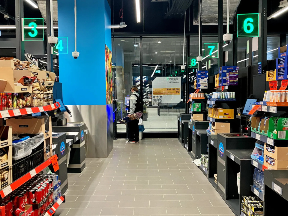 Naprava za vračilo embalaže je nameščena pri samem vhodu. Od 1. januarja 2026 morajo trgovci na Poljskem sprejemati vračilo embalaže v okviru nacionalnega sistema kavcij.