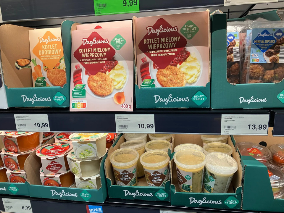 Pod blagovno znamko Daylicious, ki sta jo skupaj razvila Aldi Nord in Aldi Süd, ponujajo poljske specialitete, kot sta svinjski kotlet in ječmenova juha (krupnik).