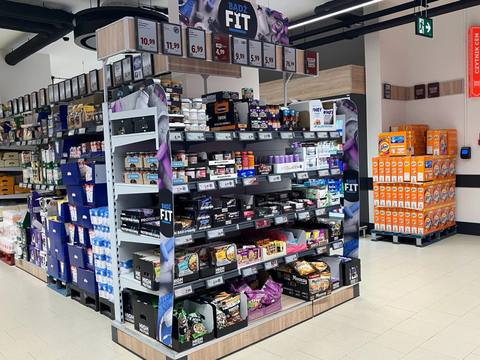 Zaključek gondole pri diskontnem prodajalcu "Be Fit" strnjuje fitnes trend v zelo viden impulzni modul. Izstopajoča pozicioniranost pa signalizira, da Lidl prigrizkov in prehranskih dopolnil, osredotočenih na zdravje, ne vidi kot nišo temveč kot trend, pomemben za široko bazo strank.