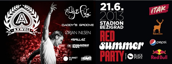 Največja zvezda veledogodka ob najdaljši noči leta bo vsekakor švedski DJ Axwell. Veliki dogodek na prostem bo gostil legendarni Centralni Stadion za Bežigradom, obeta pa se pestro dnevno dogajanje, bogata scenografija in številne atrakcije, ki bodo že petič zapored upravičile sloves rdečih zabav kot najbolj norih elektronskih zabav v Sloveniji. Poleg omenjenega člana zasedbe Swedish house mafia, bo v poskočnih ritmih plesišče razgibaval tudi egipčanski duet producentov elektronske muzike Aly&Fila, nepozabno izkušnjo pa dopolnjuje še en strokovnjak za žanr trance glasbe, Norvežan Ørjan Nilsen.