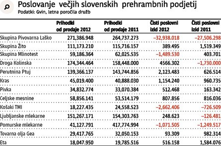 Težave slovenskih živilskopredelovalnih podjetij so vedno večje. Obseg proizvodnje pijač in živil se je lani znižal za dobrih pet odstotkov, upadli sta produktivnost in dodana vrednost na zaposlenega.