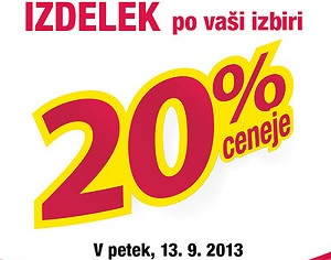 Dvajsetodstotni popust na izbrani izdelek bodo stranke v Mercatorju lahko uporabile tako, da bodo na blagajni predložile veljaven kupon. Ti so na voljo v Mercatorjevem letaku "Sosedove novice" z veljavnostjo od 12. do 18. septembra 2013 in v tematskem letaku Super & Hiper z veljavnostjo od 12. do 24. septembra 2013.| Pravila uporabe kupona: En kupon je možno unovčiti na en izbran izdelek ob enkratnem nakupu. Za izbrani izdelek, na katerega kupec uveljavlja 20 % popust, se izdela ločen račun. Kupon velja v živilskih prodajalnah Mercator, ne velja pa v franšiznih prodajalnah in Mercator spletni trgovini. Več informacij kupci lahko najdejo na samem kuponu. |