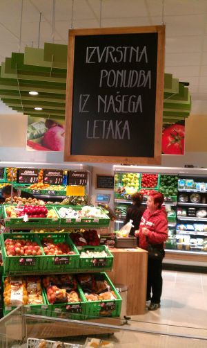 Prodajalna je svoja vrata odprla ob 8. uri zjutraj, še nekaj ur zatem pa se je na blagajni kar trlo obiskovalcev, ki so si nabrali živeža po znižanih otvoritvenih cenah. Danes je namreč po trgovini na Celovški 163 kar mrgolelo stojnic, kjer so lahko kupci preizkusili nekatere proizvodne novosti. Odpiralni čas trgovine bo vse dni v tednu med 7. in 21. uro.1. velik pomen svežine izdelkov – dnevno sveže in pripravljeno v prodajalni, izpostavljeno v prodajnem prostoru in kupcu predstavljeno na vizualno dopadljiv način.