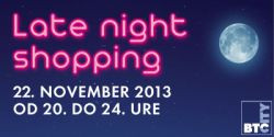 Trgovci in gostinci za ta dan - "Late night shopping" - pripravljajo ugodnosti v obliki posebnih popustov, akcijskih ponudb in priložnostih daril. To seveda velja tudi za tamkajšnji Spar hipermarket!Nočno nakupovanje so v posameznih večjih prodajalnah, ki delujejo v okviru BTC City Ljubljana, doslej uspešno izvedli že nekajkrat, tokrat pa so se prvič odločili, da delovni čas trgovin in gostinskih lokalov podaljšamo na celotnem območju BTC Cityja. Na ta način želijo svojim obiskovalcem omogočiti, da nakupe, s katerimi med tednom zaradi pomanjkanja časa odlašajo, opravijo v petek zvečer. BTC City Ljubljana bo tako v petek, 22. novembra, povsem normalno in v celoti živel do polnoči.