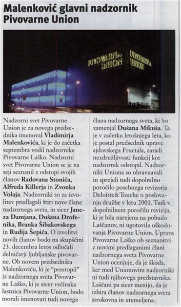 Objavljamo popravek funkcije Dušana Mikuša za katerega smo pri objavi novice napačno zapisali, da je predsednik Fructala. Predsednik Fructalove uprave je Luka Jejčič.