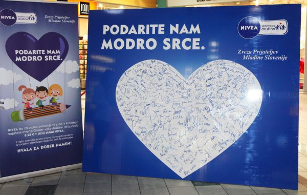 Hkrati zbiranje src do 15. februarja poteka tudi na www.nivea.si/srce. NIVEA že osmo leto v sodelovanju z Zvezo Prijateljev Mladine Slovenije med 25. januarjem in 15. februarjem pripravlja vseslovenski dobrodelni projekt NIVEA Podarite nam modro srce, s katerim bo omogočeno šolanje mladim iz socialno šibkejših okolij. Vsak podpis članov družin bo prinesel 0,25 € v Učni sklad NIVEA, ki ga bo ZPMS v celoti namenila za štipendije znanja željnih otrok.