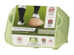 Ragbijska zveza Anglije (Rugby Football Union) je združila moči s proizvajalcem jajc Stonegate Farmers in ji bo tako kot blagovna znamka pomagala pospeševati prodajo.Prva pakiranja s po šestimi jajci v embalaži so šla v prodajo 22. februarja, ravno na dan prve letošnje tekme Angležov v pokalu šestih nacij, prvi z izdelkom pa so se pohvalili pri trgovcu Ocado. V kratkem naj bi jih ponudili tudi pri ostalih velikih udeležencih na maloprodajnem trgu Anglije, kot so Waitrose, Morrison's in Sainsbury's.