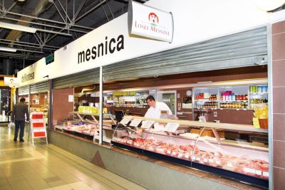 Blagovna znamka Loške mesnine (nekdaj Družba Klavnica Škofja Loka) pod različnimi imeni v Škofji Loki deluje že vse od leta 1906 (na fotografiji je njihova poslovalnica v ljubljanskem BTC-ju).
