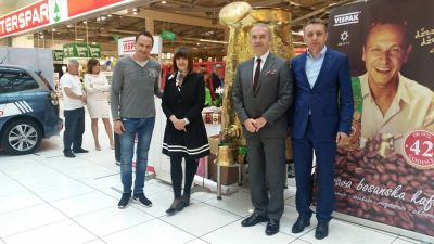 Dogodek ob vstopu Zlatne džezve v prodajno verigo Interspar sta obiskala tudi ambasador BiH v Sloveniji Željko Jerkić in konzulka, Azra Popović (na fotografiji).