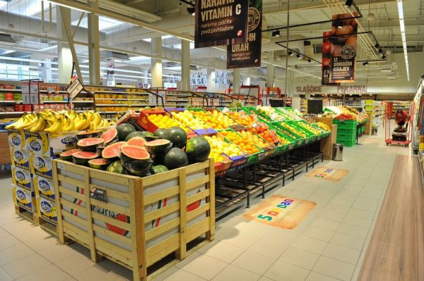 Po novem konceptu za večje formate trgovin so zdaj v hipermarketu večji in preurejeni "sveži" oddelki za sadje in zelenjavo, za kruh s pekarnico, povečano toploteko in s ponudbo pakiranega mesa dopolnjeno odlično mesnico.