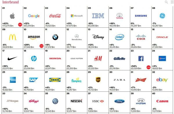 Svetovalna služba Interbrand je razkrila lestvico največjih blagovnih znamk, na kateri je skoraj 34 milijard vredni Amazon od trgovcev zasedel najvišje 10. mesto. Spletni trgovec se je od lanskega leta povzpel za tri mesta, potem ko se je njegova skupna vrednost dvignila za 29 odstotkov.