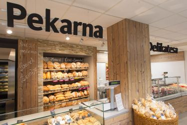 Na 250 m2 prodajne površine je moč kupiti sveže pečen kruh in pecivo, odlično založeni pa so tudi oddelki sadja in zelenjave, delikatesa ter mlečni program.