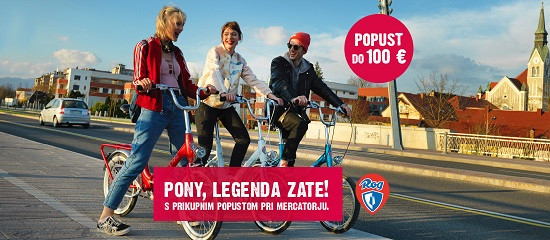 Poleg televizijskega oglasa vključuje tudi vključitev in nagrajevanje zvestih kupcev. "Na svoj račun bodo prišli nostalgiki, lovilci trendov in 'užitkarji'". Pony je pač legenda, ki znova postaja trend. Ime Pony govori samo zase, prav tako so znane lastnosti in prednosti izdelka," pojasnjujejo pri Mercatorju. Akcija traja do 4. julija, kolesa pa so na voljo v rdeči, beli, modri in zeleni barvi.