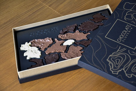 Spletna trgovina mojacokolada.si nudi čokolado v obliki Slovenije