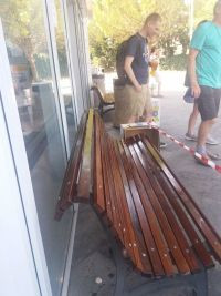 V Izoli sta pleskarska mojstra včeraj prebarvala dve klopi, ki sta pred Sparom na Prešernovi 49.