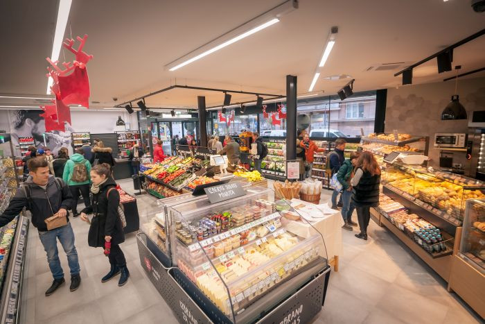 Trgovina z 200 m2 prodajne površine je kot nalašč za dijake ali študente, pa tudi zaposlene v bližini, ki jih vedno baše čas, zelo priročno pa tudi za stanujoče v starem mestnem jedru. V trgovini nakup se nakup opravi mimogrede, saj je vse pregledno, dostopno, marsikaj tudi že pripravljeno, predvsem pa izbrano, sveže in kakovostno.