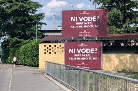 Na oglasnih tablah Vinakoper piše: "Ni vode? Brez skrbi, če je ni, smo tu mi!" Oglas je zasnovan na podlagi problematike vode v slovenski Istri in je sprožil različne odzive, tudi zgražajoče, nekateri so table označili celo za bizarne in cinične.