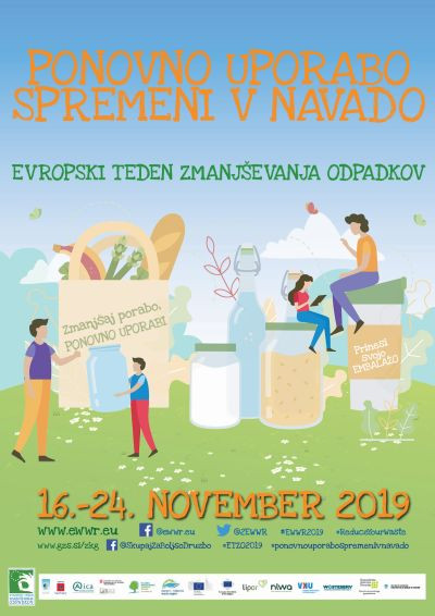 Letošnji Evropski teden zmanjševanja odpadkov (ETZO) se bo odvijal med 16. in 24. novembrom 2019. Zbornica komunalnega gospodarstva bo tudi letos skupaj z Ministrstvom za okolje in prostor koordinatorka. Prijave so odprte do 8. novembra.Preprečevanje nastajanja odpadkov je najbolj zaželeno vedenje pri ravnanju z odpadki – najboljši odpadek je namreč tisti, ki ga ni. Obstajajo številni načini, kako lahko proizvedemo manj odpadkov, eden učinkovitejših je ponovna uporaba. V Sloveniji se zato v letošnjem Evropskem tednu zmanjševanja odpadkov posvečamo ponovni uporabi, predvsem tekstila, kosovnih odpadkov in embalaže. Akcija bo tokrat potekala v tednu od 16. do 24. novembra 2019.