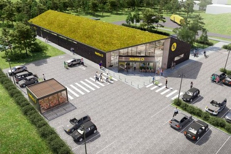 Največji danski trgovec Salling Group, oziroma njena veriga Netto, v Horsensu gradi svojo prvo trajnostno trgovino. Zgledu naj bi po besedah vodilnih v podjetju sledile tudi vse bodoče prodajalne.