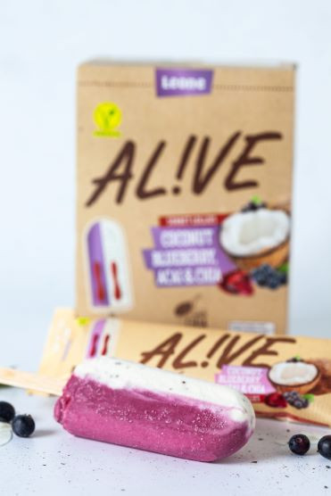 Sladoledi AL!VE so že nekaj let zapored med najbolj prodajanimi sladoledi v Sloveniji, novo prestižno nagrado pa so si prislužili s sladolednimi palčkami AL!VE Blueberry & Chia. Inovativni prigrizek predstavlja zamrznjen kokosov desert z grozdnim sokom in chia semeni, zamrznjen desert z borovnicami in s sokom iz jagod acai, polnjen z brusničnim prelivom. Porcija vsebuje le 79 kalorij!