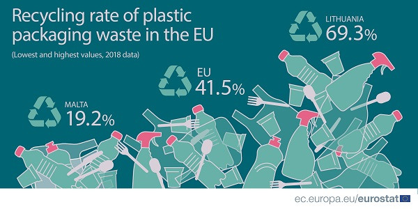 Med države, ki reciklirajo manj kot tretjino vseh plastičnih odpadkov sodijo Luksemburg, Avstrija, Danska, Finska, Irska, Madžarska, Francija in pa Malta, ki je med državami EU topogledno pri dnu, saj tam reciklirajo zgolj 19,2 % vse porabljene plastike.