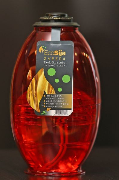 Pri sveči Zvezda velja poudariti tudi ohišje sveče, ki se lahko reciklira in zdrži tudi več let. To pomeni, da se sveče po uporabi ne odvrže, ampak le menja vložek. Vložek je iz reciklirne PET plastike. V enaki embalaži se nahaja tudi voda ter večina pijač v trgovinah. To predstavlja nepredstavljivo zmanjšanje uporabe plastike in odpadnega materiala, ki iz tega nastane.