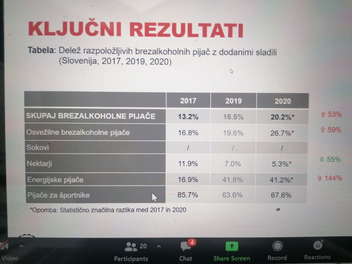 Obenem so bili na dogodku predstavljeni tudi rezultati najnovejše raziskave Inštituta za nutricionistiko o dodajanju sladil v brezalkoholne pijače v Sloveniji v zadnjih letih, ki kažejo na izrazito povečanje njihove uporabe. V aplikaciji VešKajJeš že več kot 1000 izdelkov s sladili – ti kljub zmanjšani energijski vrednosti niso optimalna izbira.