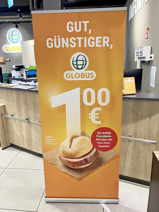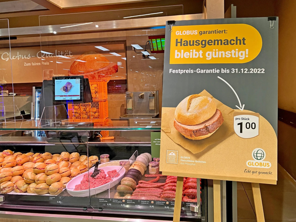 Od početka inflacije 2022. godine Globus dosljedno promovira svoj Fleischkäsebrötchen po cijeni od jednog eura na uslužnom pultu.