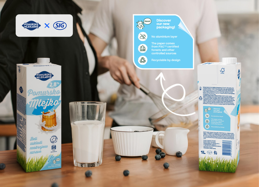 S bogatom poviješću lansiranja proizvoda u SIG kartonskim pakiranjima, ovo najnovije ponovno lansiranje proizvoda Pomursko Mlejko 2,8 % mlijeko sa smanjenim udjelom masti, s SIG Terra Alu-free + Full barrier ambalažnim materijalom, predstavlja važnu prekretnicu za lokalnu mliječnu industriju, nudeći potpunu barijernu zaštitu bez aluminijskog sloja.