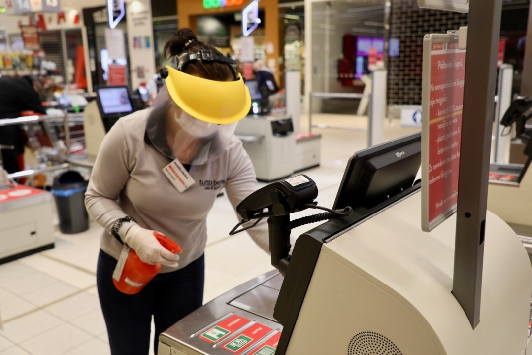 Ovom mjerom predostrožnosti nastojimo našim djelatnicima, koji su u bliskom kontaktu s kupcima, pružiti sigurnost u radu, jer na samoposlužnim blagajnama nije moguće postaviti pleksiglas barijere.