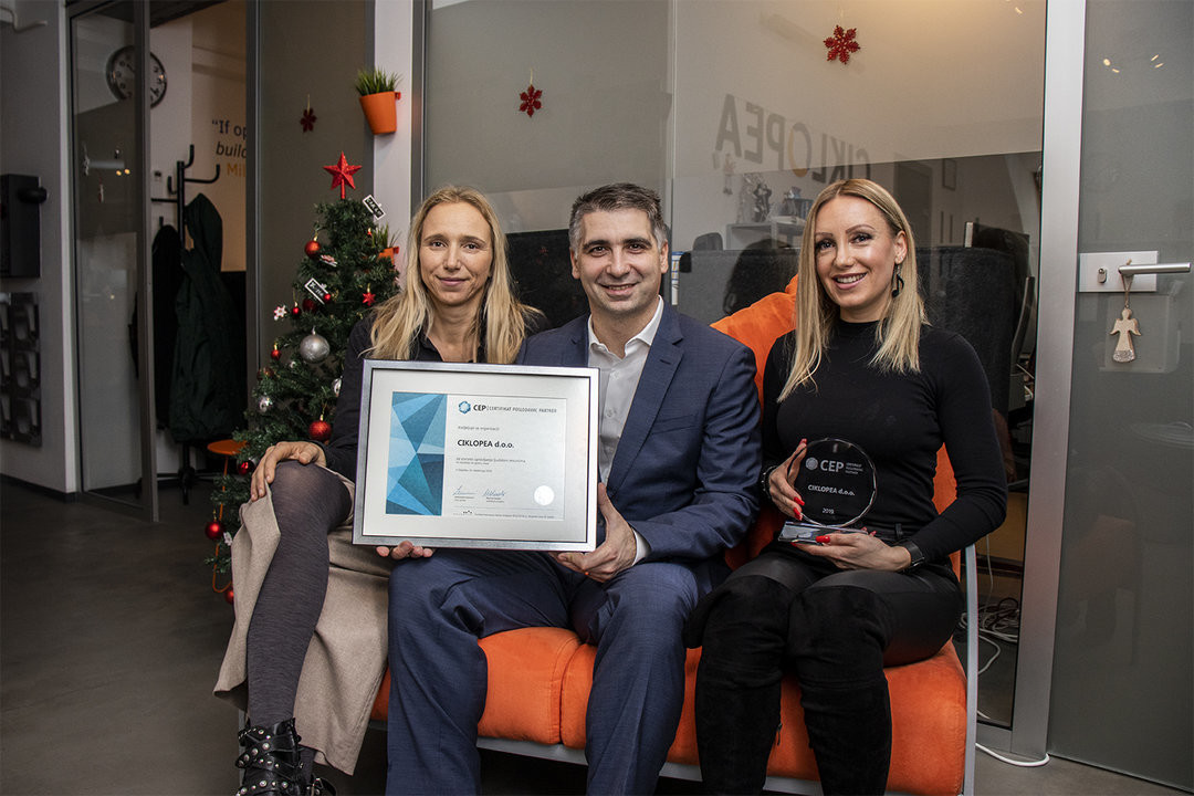 U Ciklopei su prošle godine proslavili 15 godina uspješnog poslovanja te ističu da su za njihov poslovni uspjeh zaslužni upravo njihovi kvalitetni kadrovi, zbog čega uvijek nastoje podizati ljestvicu izvrsnosti kada su u pitanju njihovi HR procesi. Sandra Boljkovac Stojak, CEO, i Sara Demiri, voditeljica ljudskih resursa, primile su certifikat Poslodavac Partner od Aleksandra Zemunića, člana Uprave tvrtke SELECTIO.