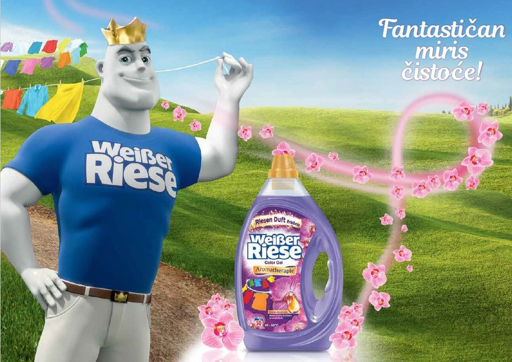 Već 50 godina, Weisser Riese je deterdžent za cijelu obitelj, koji uvjerava svojom velikom snagom pranja i svježinom.