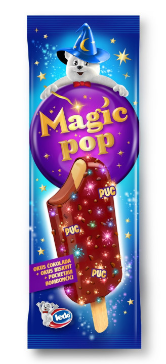 Pripremite se za najzabavniji sladoled iz Leda koji ste ikada imali prilike probati – Magic Pop! Ovaj sladoled na štapiću donosi okuse biskvita i čokolade, a posebno iznenađenje za sva čula skriveno je u jedinstvenom preljevu okusa čokolade koje sadrži pucketave bombončiće.